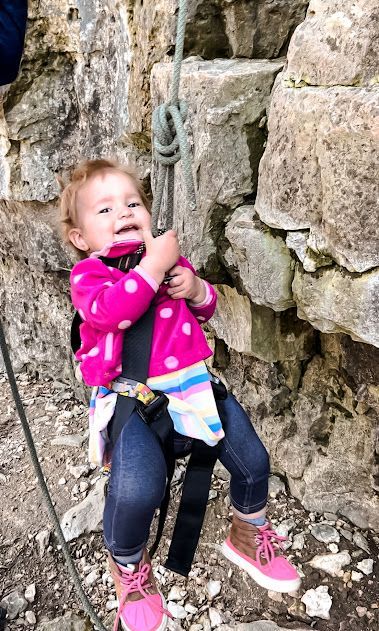 Try to remember that they are small and heights are a lot scarier to them than they are to you. Remember to be patient. Let them swing around and get comfortable trusting the rope and keeping their feet against the wall.